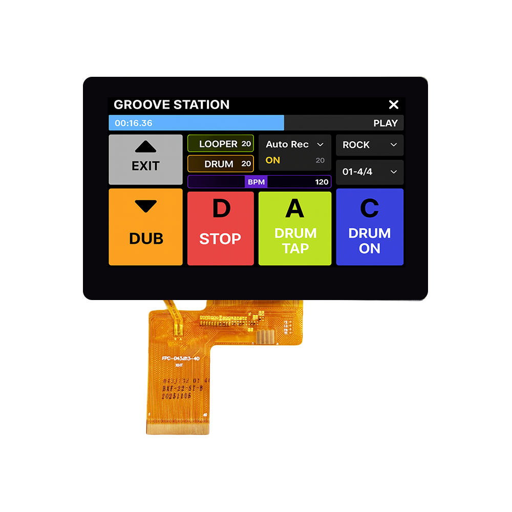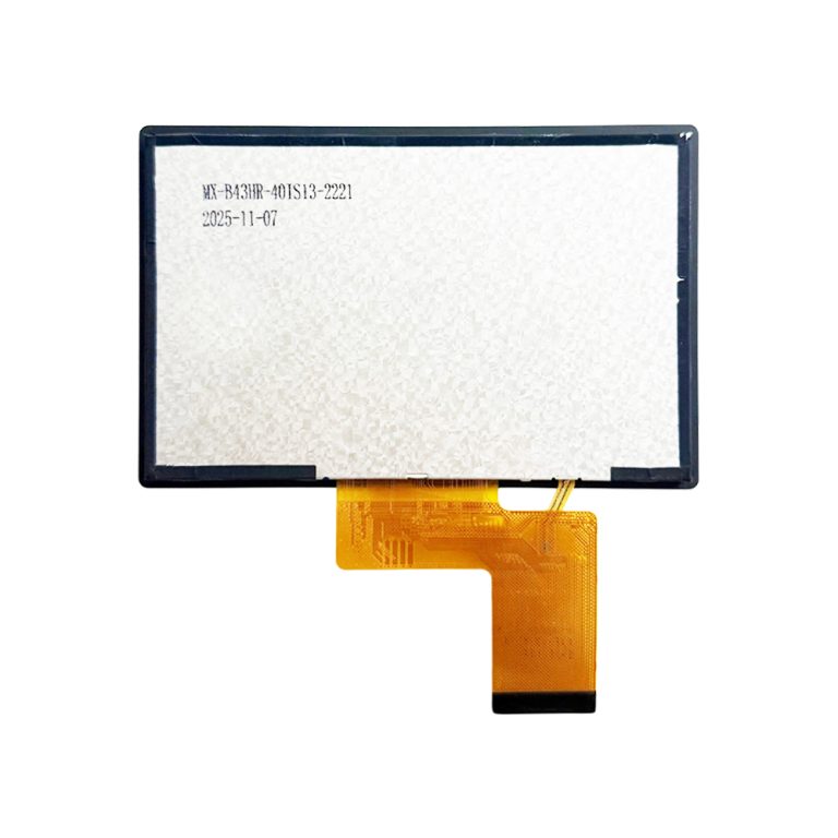 4.3 inch LCD Display with OCA-Bonded Custom Cover Glass MX-B43HR-40IS13-2221 is a 4.3" TFT LCD module featuring 800x480 resolution, 500 cd/m² high brightness, and IPS full viewing angles for clear, consistent image quality. The 4.3 inch display adopts a 40-pin RGB interface for easy integration and uses OCA bonding with an extended custom cover glass, offering better optical performance and a clean, robust front surface. With no touch layer, this TFT display is well-suited for audio equipment such as digital/analog mixers and rack-mounted processors, where clear level/status indication and durable front-panel design are required around physical knobs, faders and buttons.